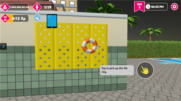 11、当屏幕出现黄色溺水图标,即可控制角色取下救生圈给顾客。