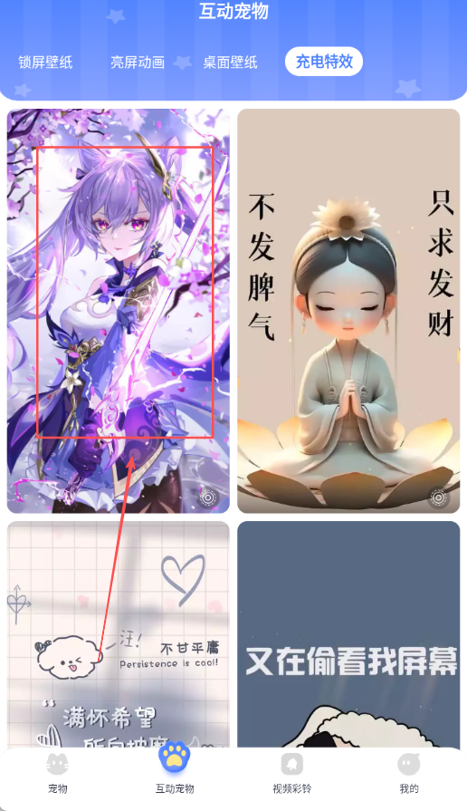 2、找到充电特效入口点击进入详细设置页面,浏览可选的充电特效样式列表展示。