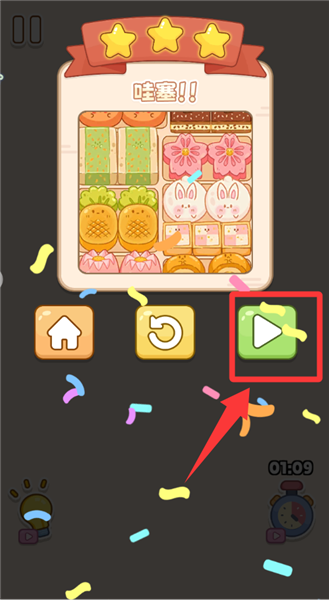 4、恭喜你过关了,点击红色框框按键继续下一关。