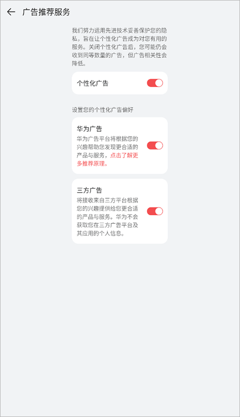 4、选择并点击右侧的开关即可关闭相关广告推荐,更好的提升阅读体验。