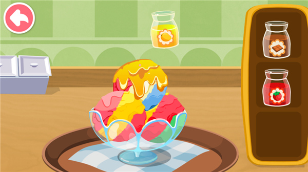 宝宝累了吗?那就到甜品店,自制甜品吧。选择你喜欢的冰淇淋份,与牛奶混合,用搅拌器搅拌后倒入冰淇淋机,就能制作冰淇淋啦。再挑选酥脆甜筒,注入冰淇淋液,甜筒完成!不知不觉中,宝宝的动手能力和创造力也得到提升。