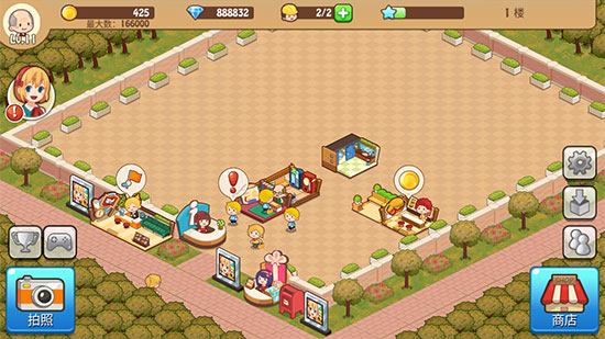 2、建造并升级各种丰富的设施以及装饰品,包括餐厅,烘培店,服装店,电子游戏中心等等!